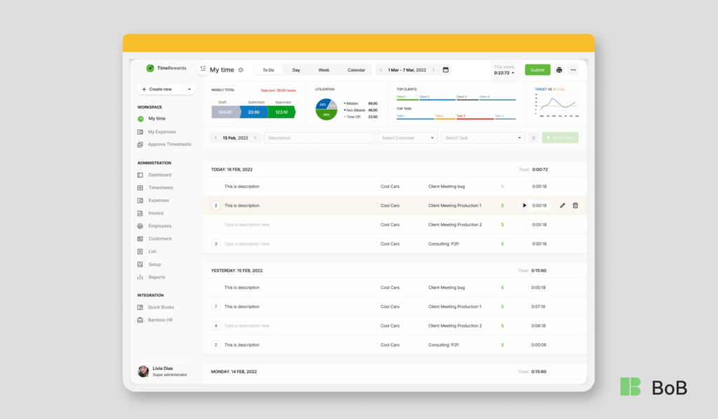 In this context, Byoxon isn’t just an app better than Timely for time tracking; it functions as an operational layer that connects people, projects, money, and reporting in one system.